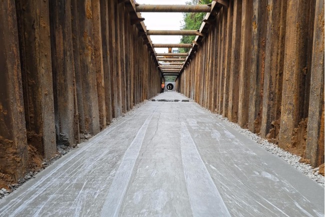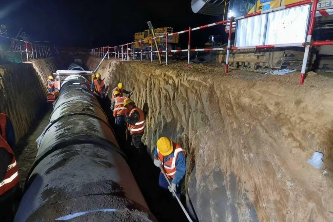 在廣東省湛江市中心城區(qū)重要點位地下管網(wǎng)更新改造項目一期工程現(xiàn)場,項目建設(shè)者已完成金德路與麻遂路交叉口設(shè)施設(shè)備更新項目350米鋼板樁支護、200米DN1650雨水管道安裝。項目部通過增加施工人員與機械、利用夜間施工趕進度等方式,積極協(xié)調(diào)解決柳青路南山涵洞、麻赤鐵路的圖紙與拆遷問題,為后續(xù)進場施工掃清障礙。